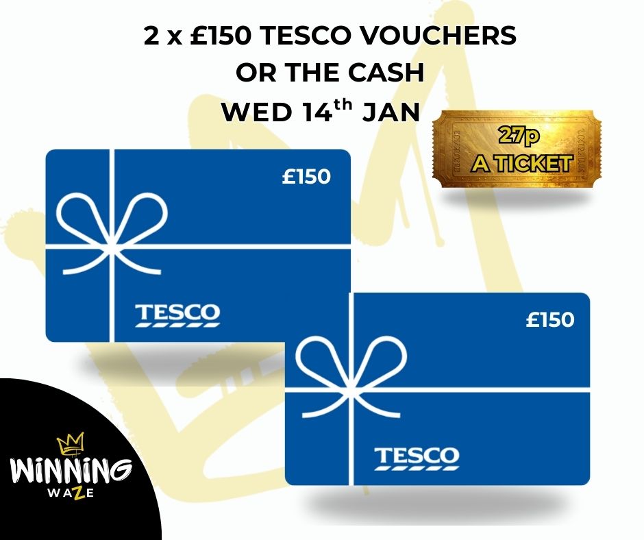 2 x £150 TESCO VOUCHERS OR THE CASH
