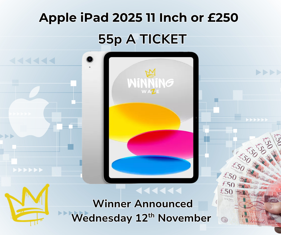 Get ready – we’ll be spinning the WaZe Wheel very soon! One lucky WINNER will be the proud new owner of the amazing Apple iPad 2025 11 Inch or £250