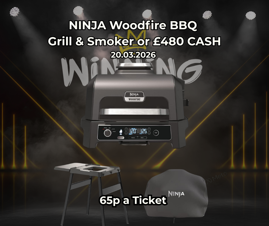 Get ready – we’ll be spinning the WaZe Wheel very soon! One lucky WINNER will be the proud new owner of the amazing Ninja Woodfire Pro XL Electric BBQ Grill & Smoker with Stand & Cover £480 CASH. Be quick, there is only 2,500 available tickets!!.
